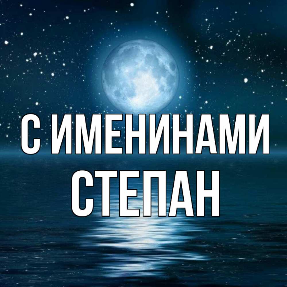Открытка С именинами Степан. лунная дорожка на воде. звезды