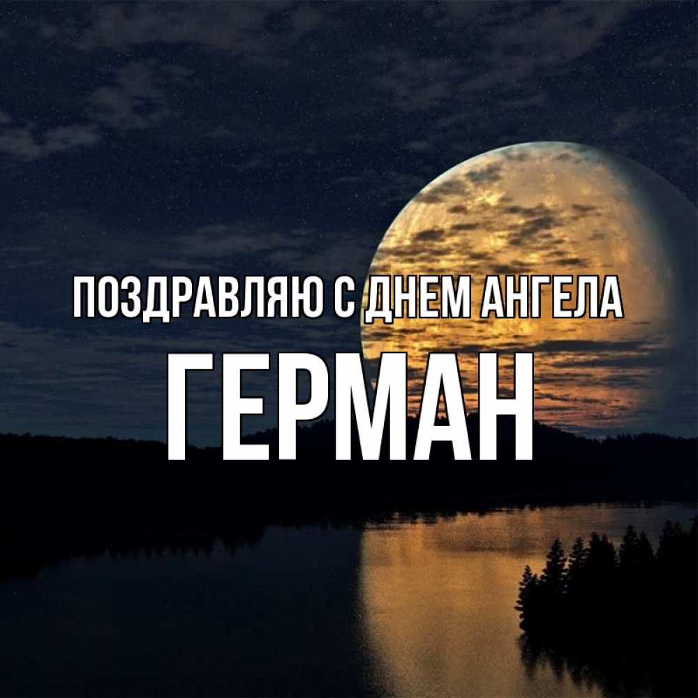 Открытка Поздравляю с днем Ангела Герман. отражение луны в воде. речка