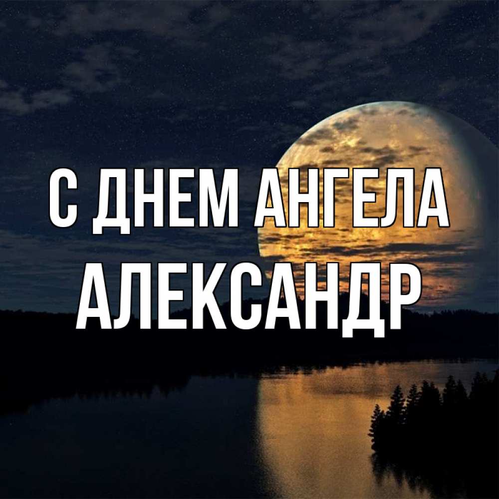 Открытка С днем Ангела Александр. отражение луны в воде. речка