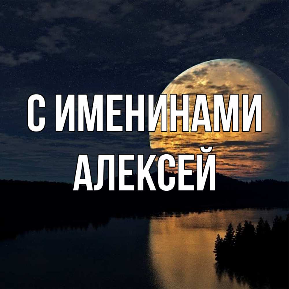 Открытка С именинами Алексей. отражение луны в воде. речка