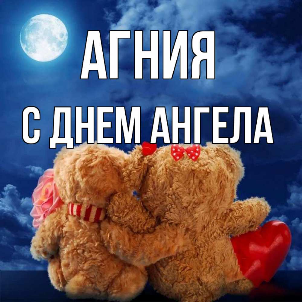 Открытка Агния С днем ангела. медведи смотрят на луну. плюшевые