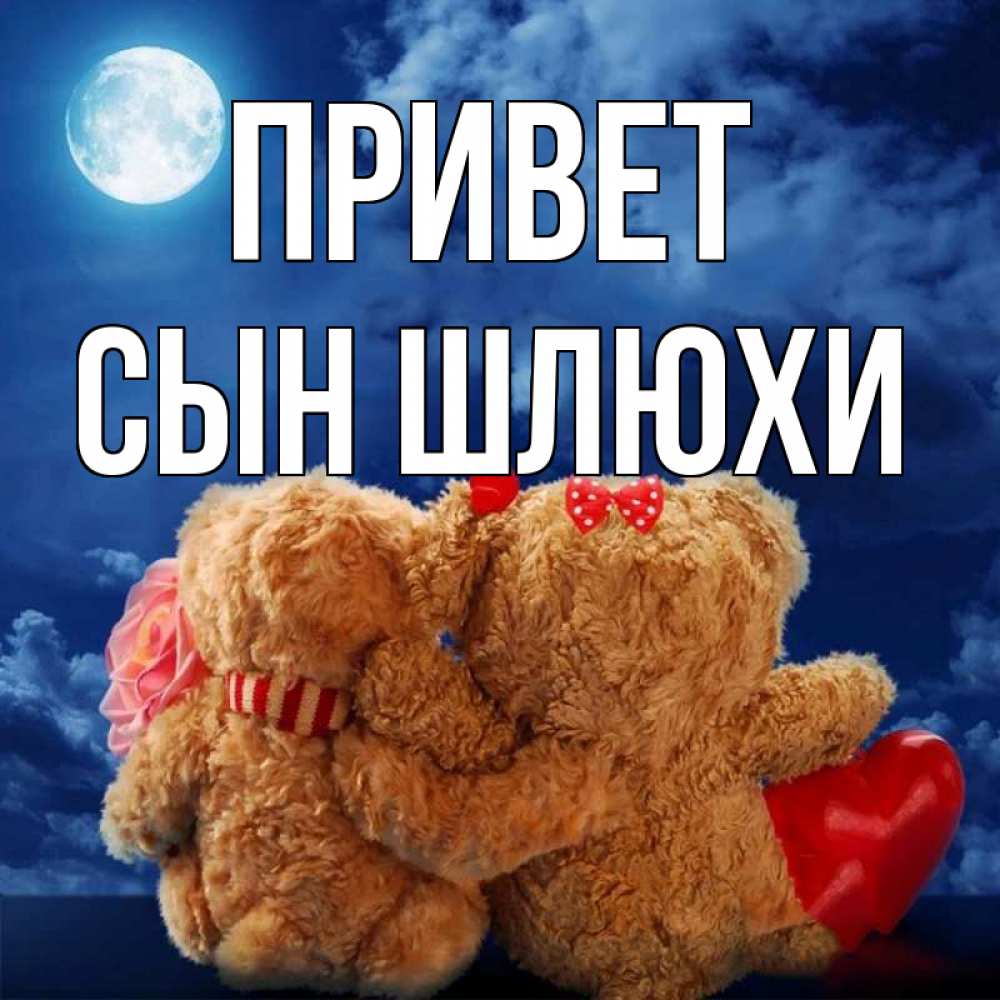 Открытка Привет Сын шлюхи. медведи смотрят на луну. плюшевые