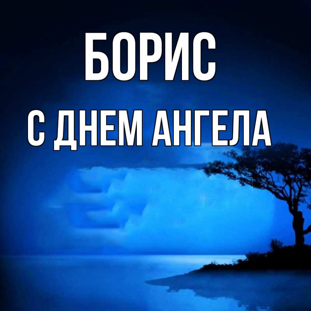 Открытка Борис С днем ангела. ночной пейзаж с деревом. ночное побережье