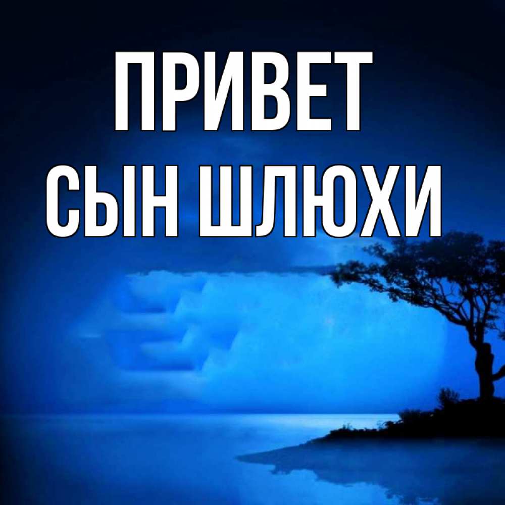 Открытка Привет Сын шлюхи. ночной пейзаж с деревом. ночное побережье