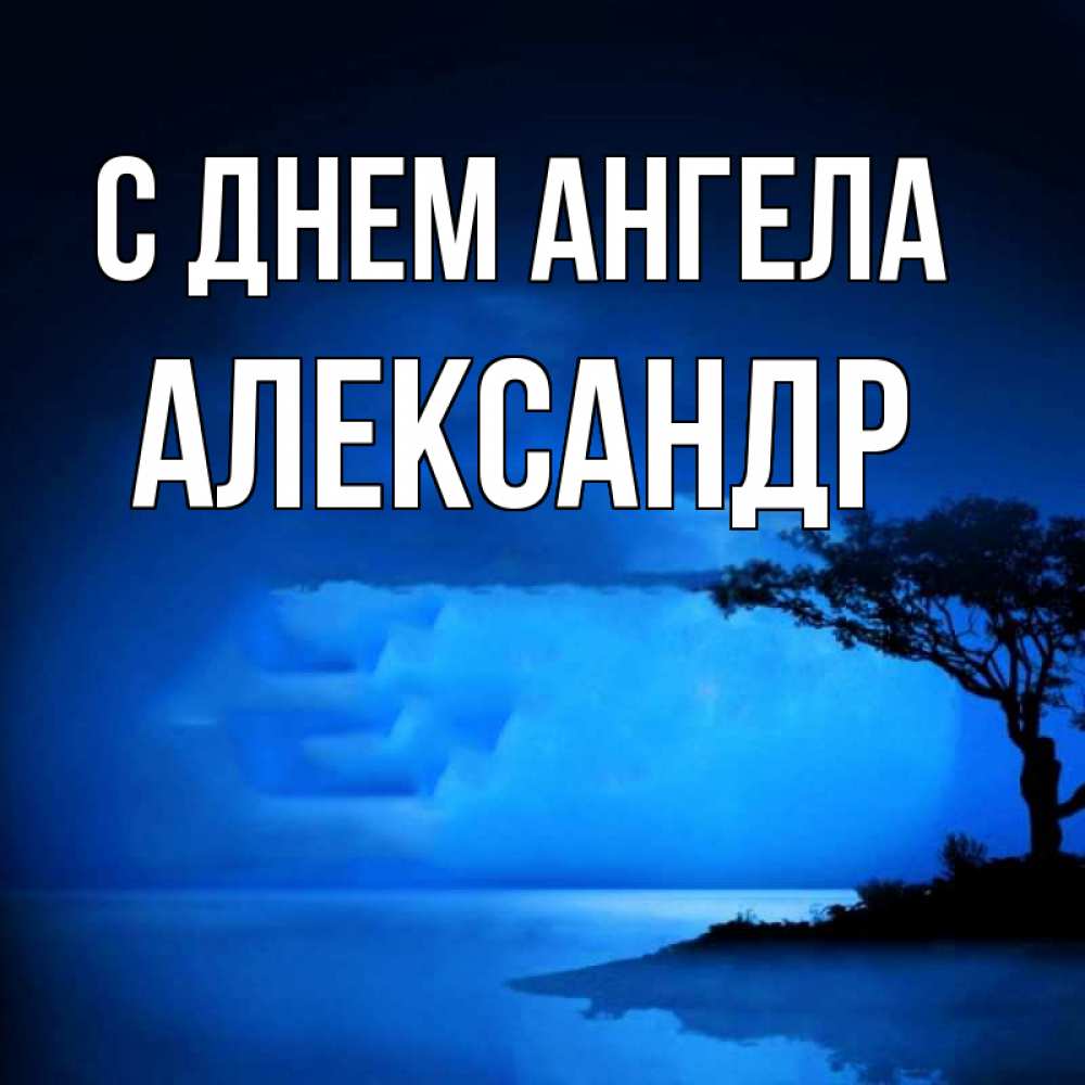Открытка С днем Ангела Александр. ночной пейзаж с деревом. ночное побережье
