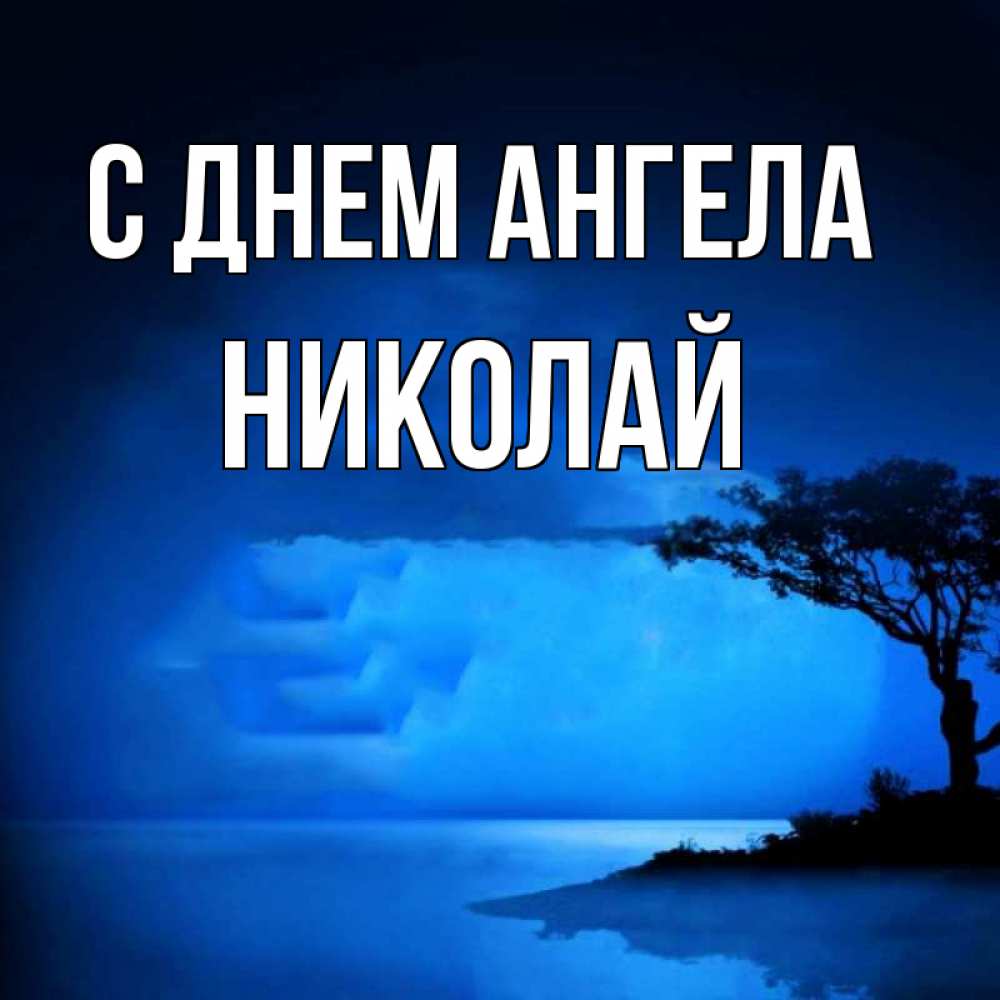 Открытка С днем Ангела Николай. ночной пейзаж с деревом. ночное побережье