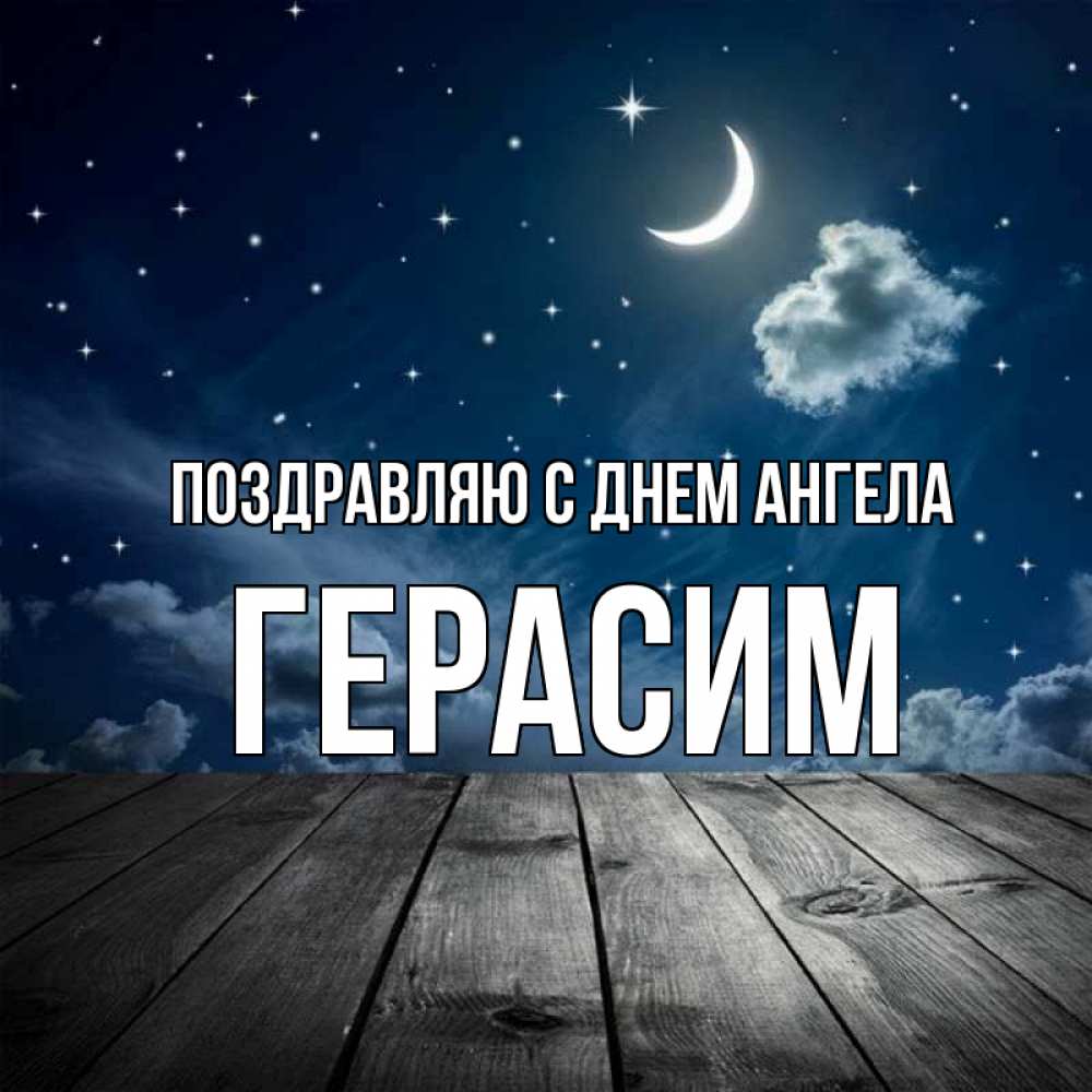 Открытка Поздравляю с днем Ангела Герасим. пирс и звездное небо. месяц и звезда