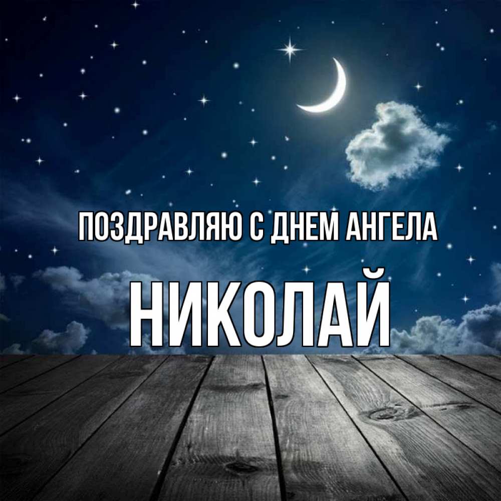 Открытка Поздравляю с днем Ангела Николай. пирс и звездное небо. месяц и звезда