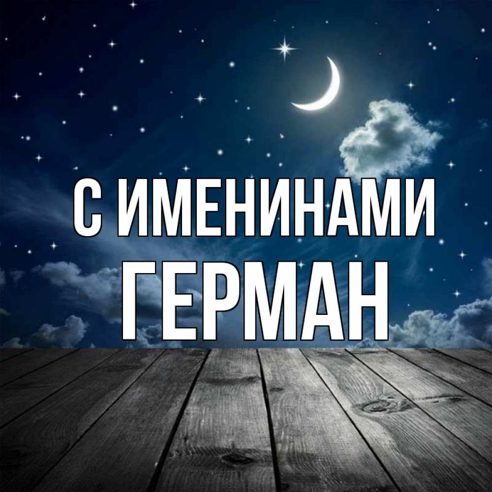 Открытка С именинами Герман. пирс и звездное небо. месяц и звезда