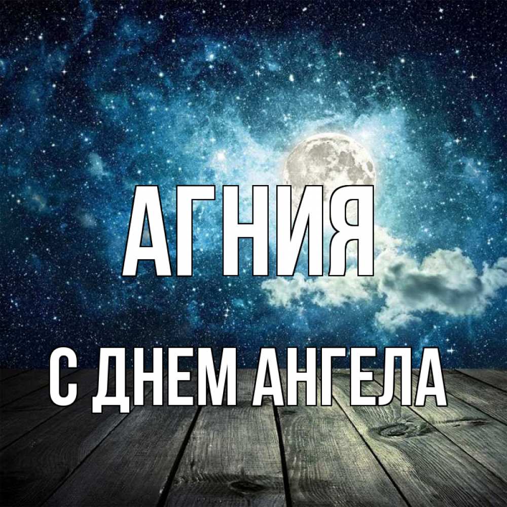 Открытка Агния С днем ангела. деревья. луна
