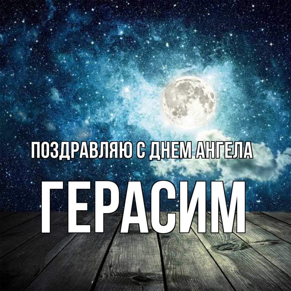 Открытка Поздравляю с днем Ангела Герасим. деревья. луна