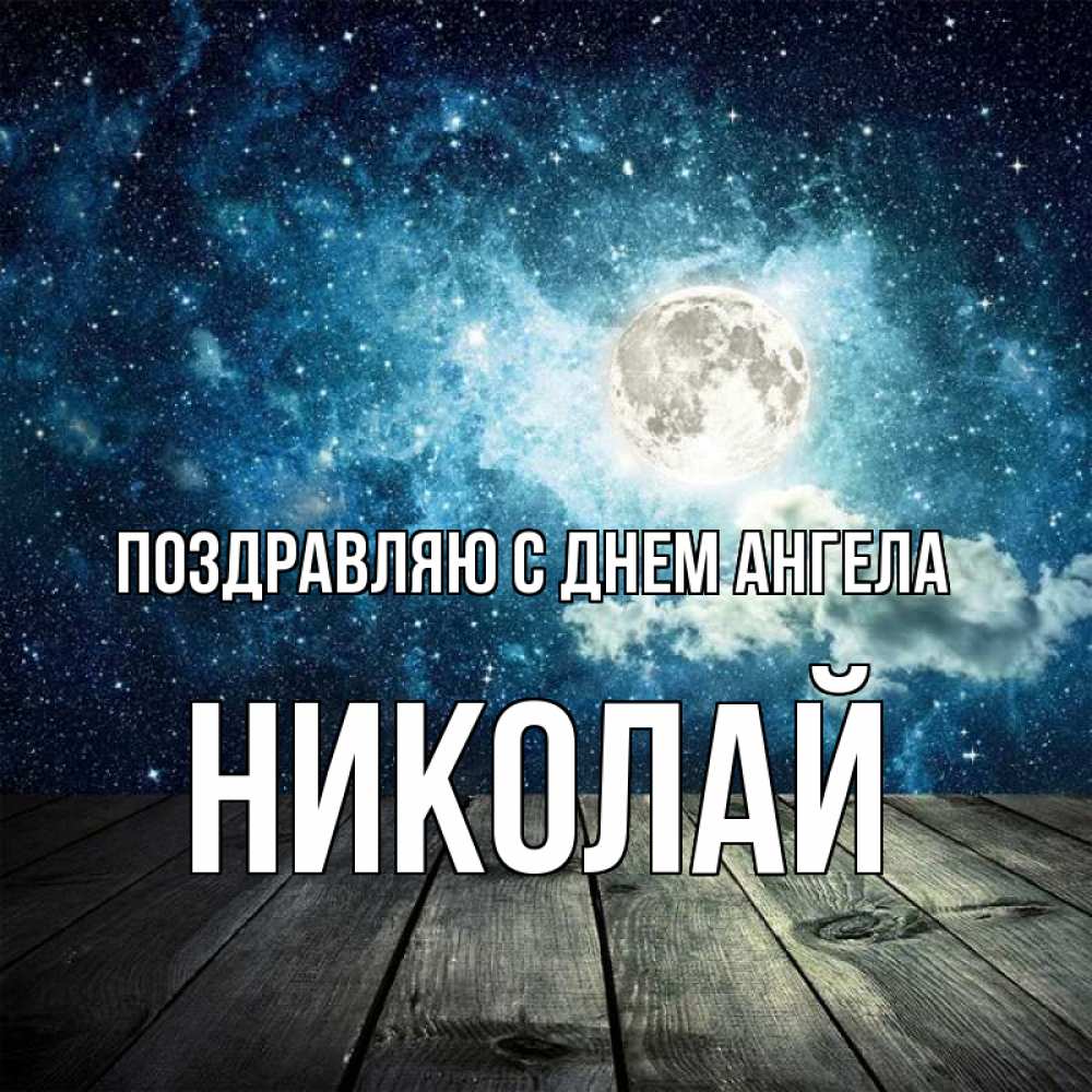 Открытка Поздравляю с днем Ангела Николай. деревья. луна