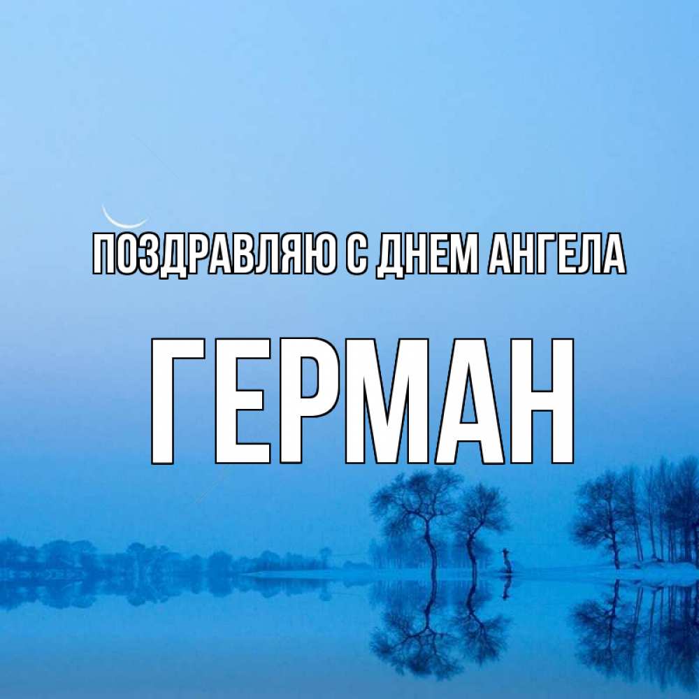 Открытка Поздравляю с днем Ангела Герман. отражения деревьев в воде. весна