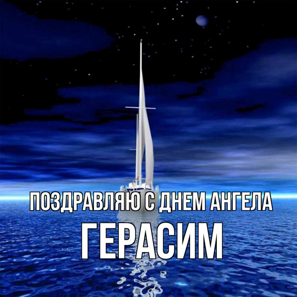 Открытка Поздравляю с днем Ангела Герасим. яхта в море. ночью