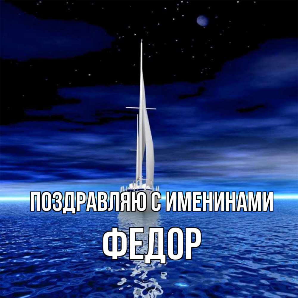 Открытка Поздравляю с именинами Федор. яхта в море. ночью