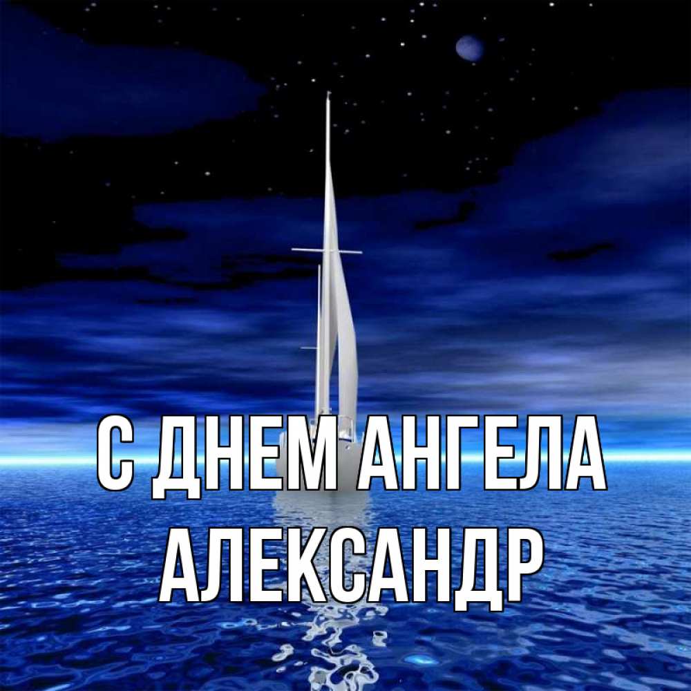 Открытка С днем Ангела Александр. яхта в море. ночью