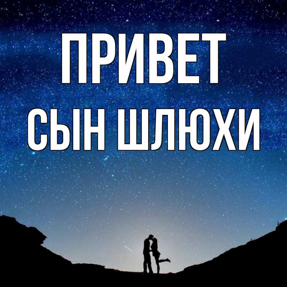 Открытка Привет Сын шлюхи. монументальная подпись. звездное небо и люди