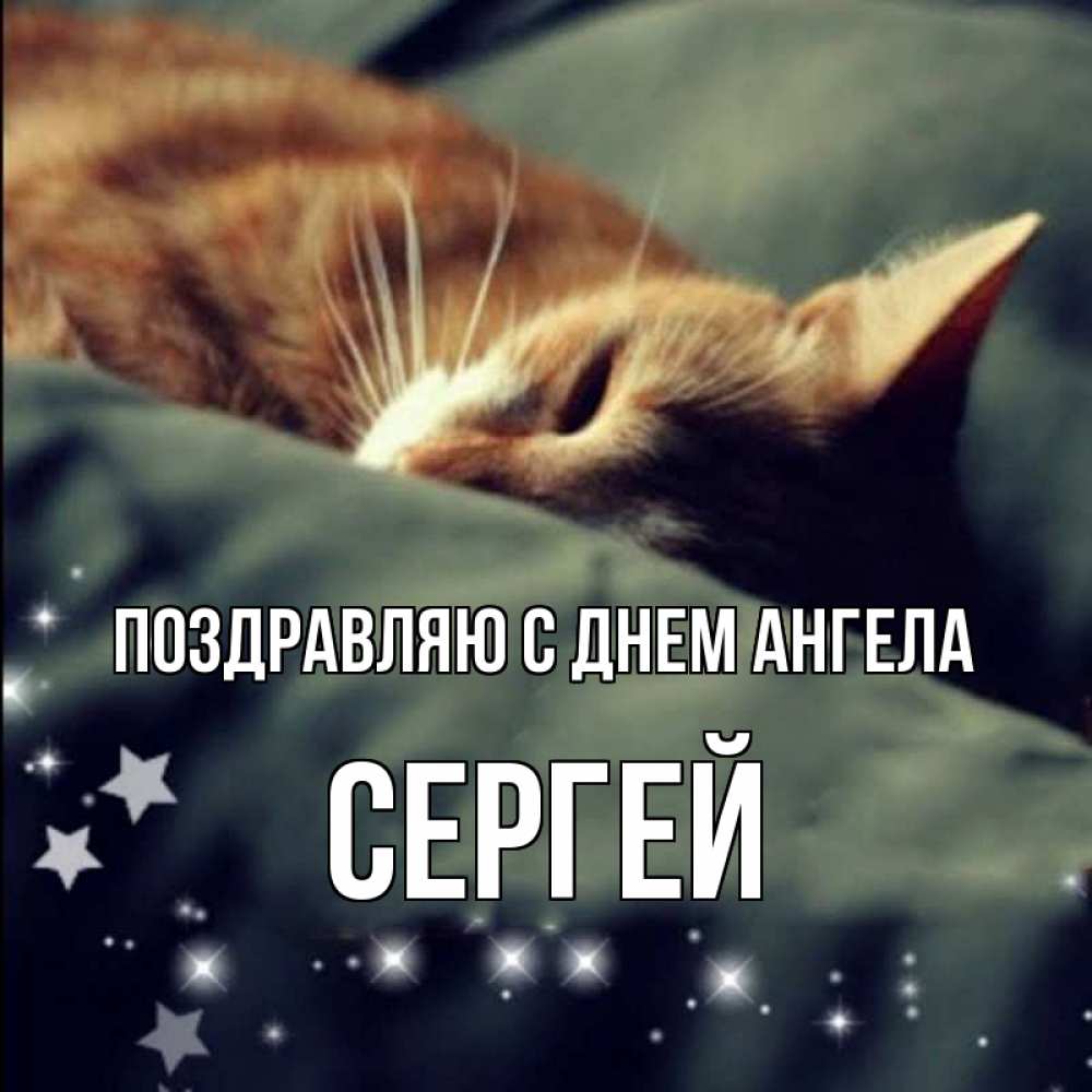 Открытка Поздравляю с днем Ангела Сергей. рыжий кот спит. кроватка