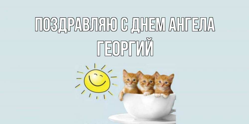 Открытка Поздравляю с днем Ангела Георгий. котята в кружке и солнце. котята