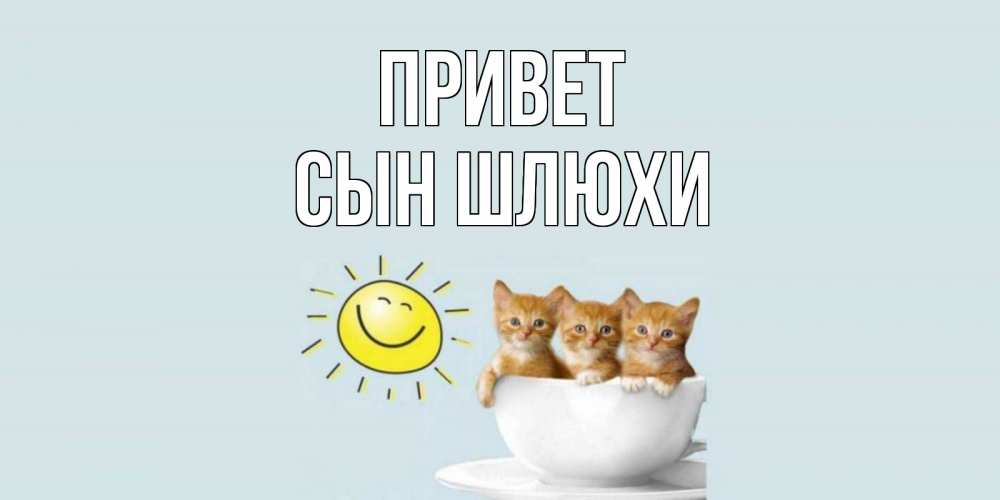 Открытка Привет Сын шлюхи. котята в кружке и солнце. котята