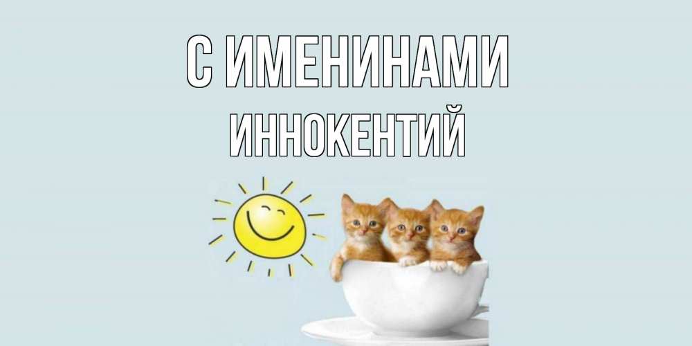 Открытка С именинами Иннокентий. котята в кружке и солнце. котята