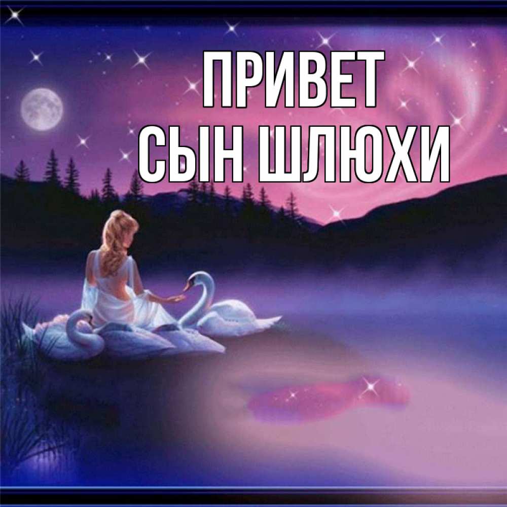 Открытка Привет Сын шлюхи. девушка и лебедь. луна