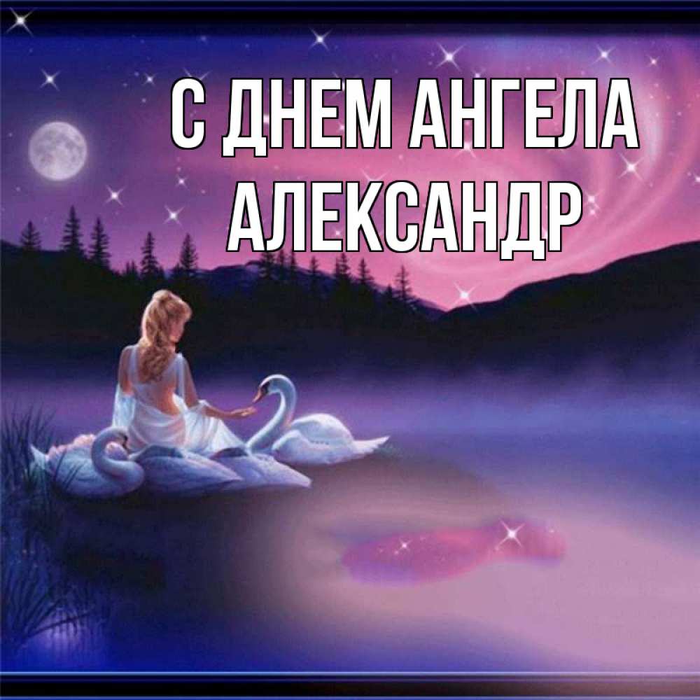 Открытка С днем Ангела Александр. девушка и лебедь. луна