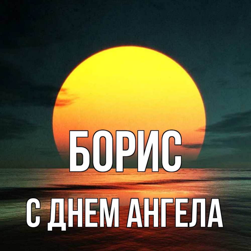 Открытка Борис С днем ангела. солнце садится в водную гладь. огромный диск солнц