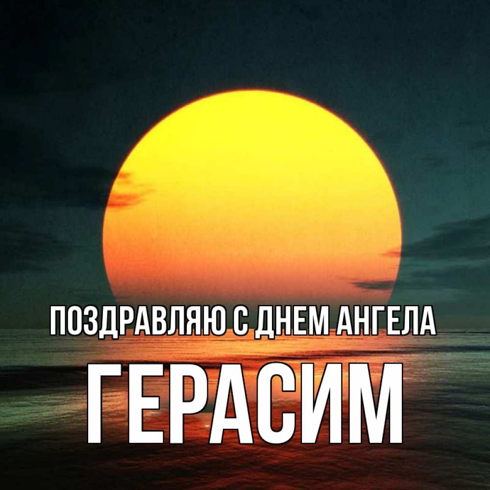 Открытка Поздравляю с днем Ангела Герасим. солнце садится в водную гладь. огромный диск солнц