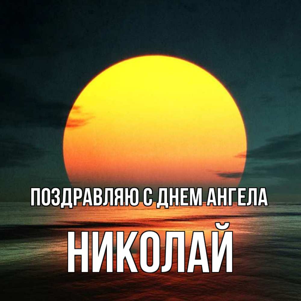 Открытка Поздравляю с днем Ангела Николай. солнце садится в водную гладь. огромный диск солнц