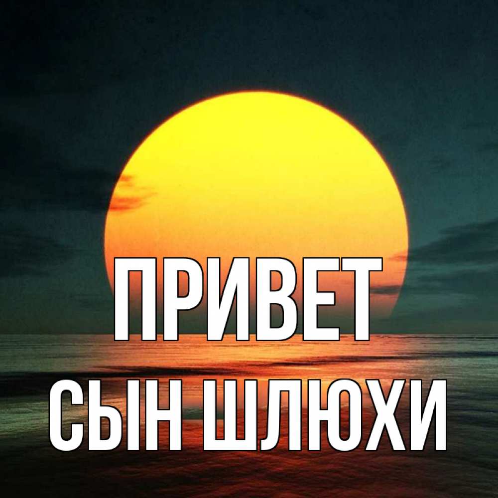 Открытка Привет Сын шлюхи. солнце садится в водную гладь. огромный диск солнц