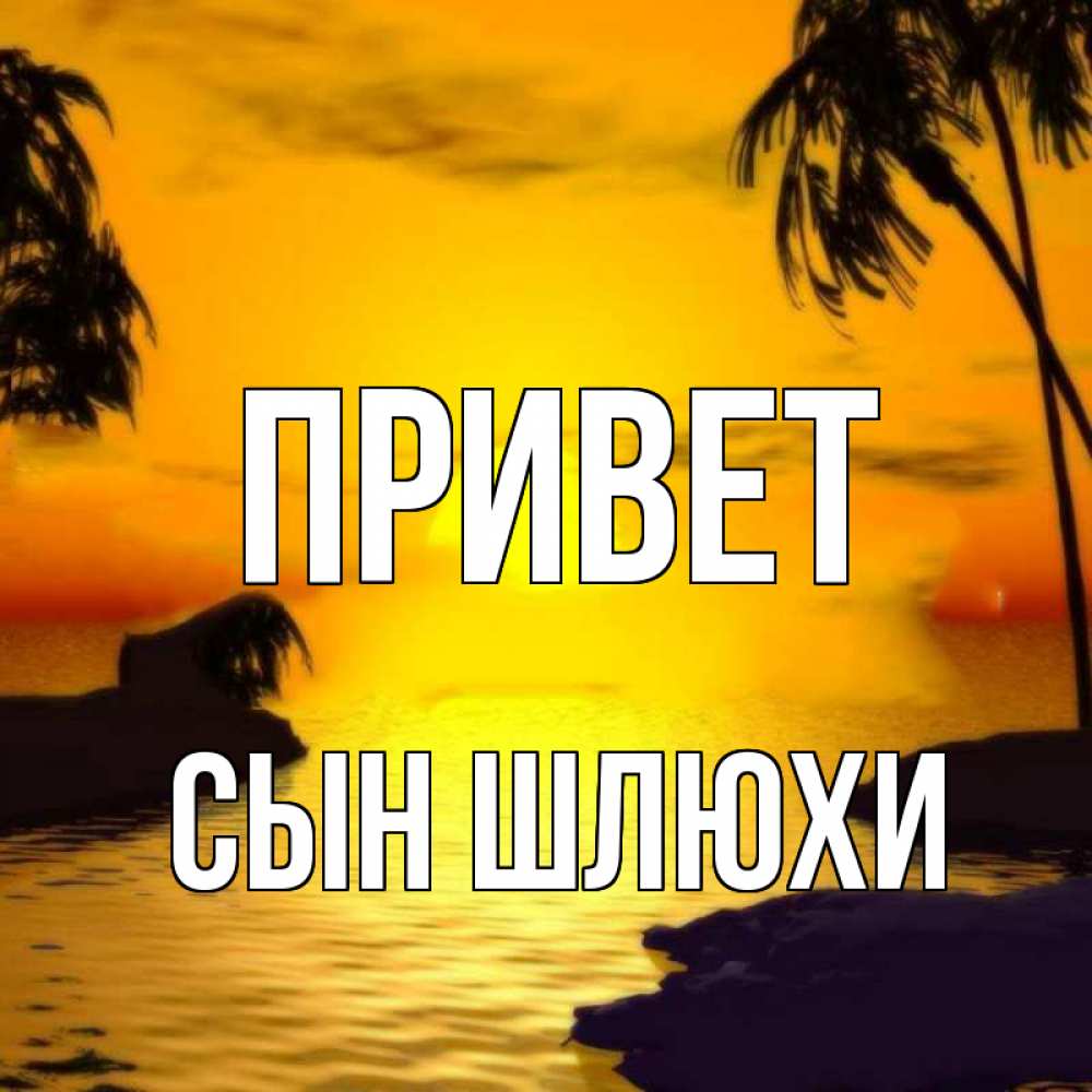 Открытка Привет Сын шлюхи. закат и пальмы. остров