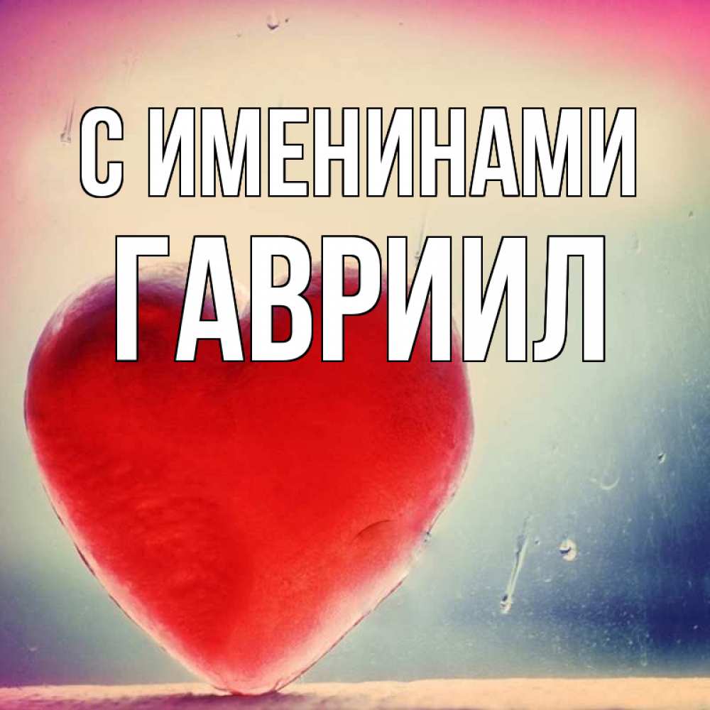 Открытка С именинами Гавриил. сердце из льда. красное сердечко