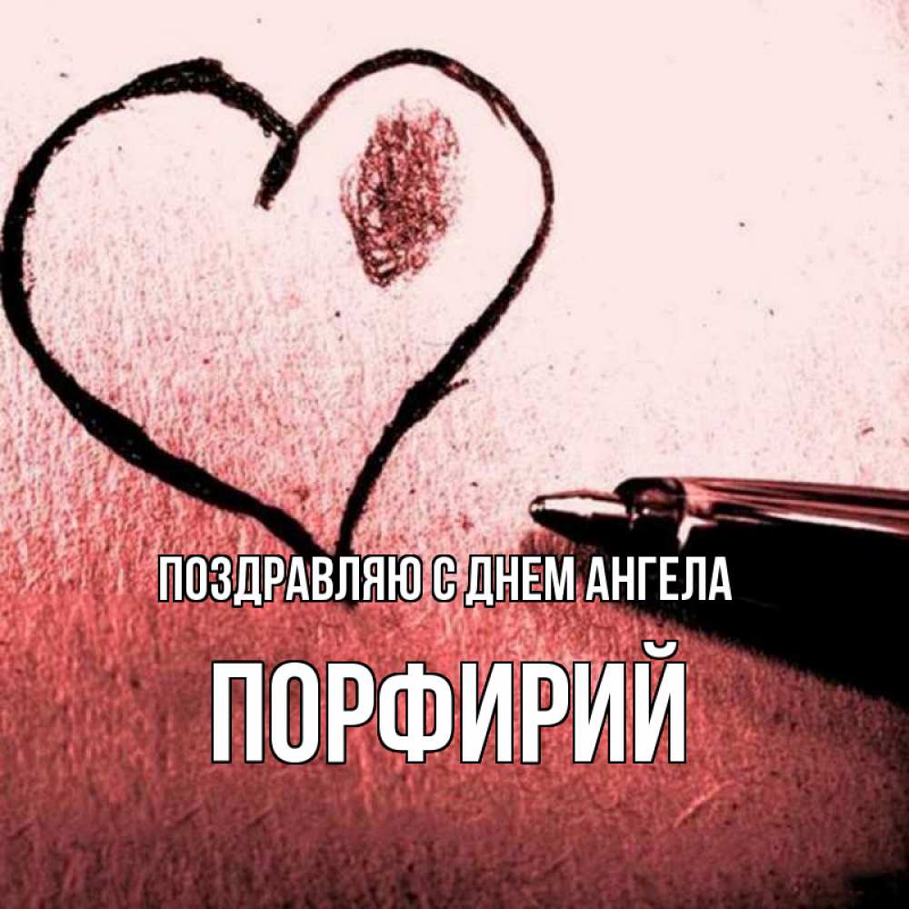 Открытка Поздравляю с днем Ангела Порфирий. сердце ручко. черное сердце