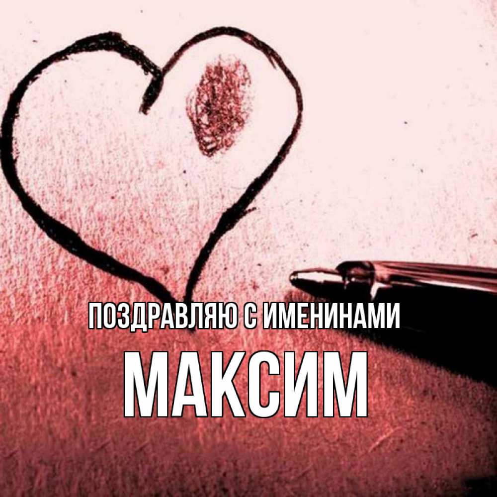 Открытка Поздравляю с именинами Максим. сердце ручко. черное сердце