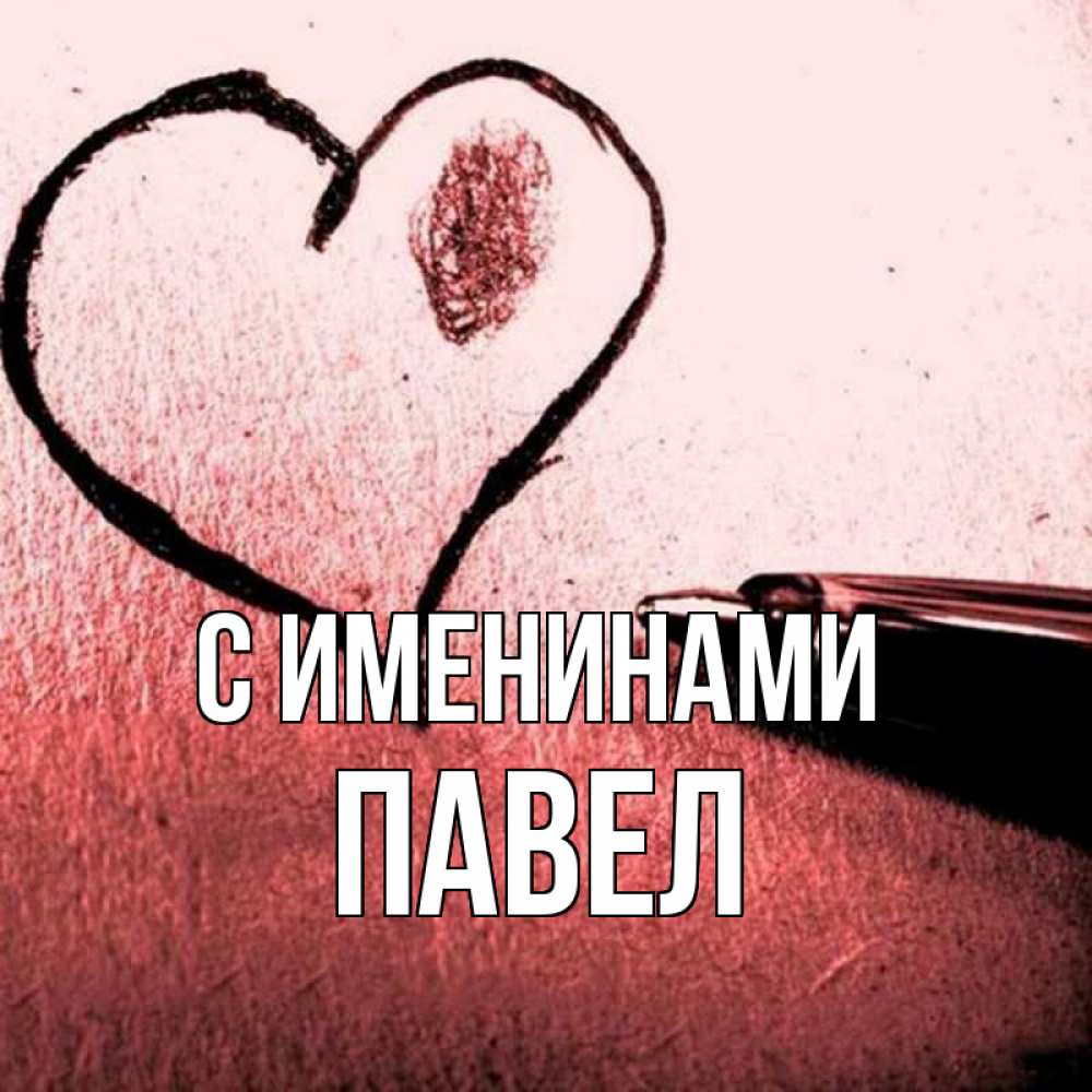 Открытка С именинами Павел. сердце ручко. черное сердце