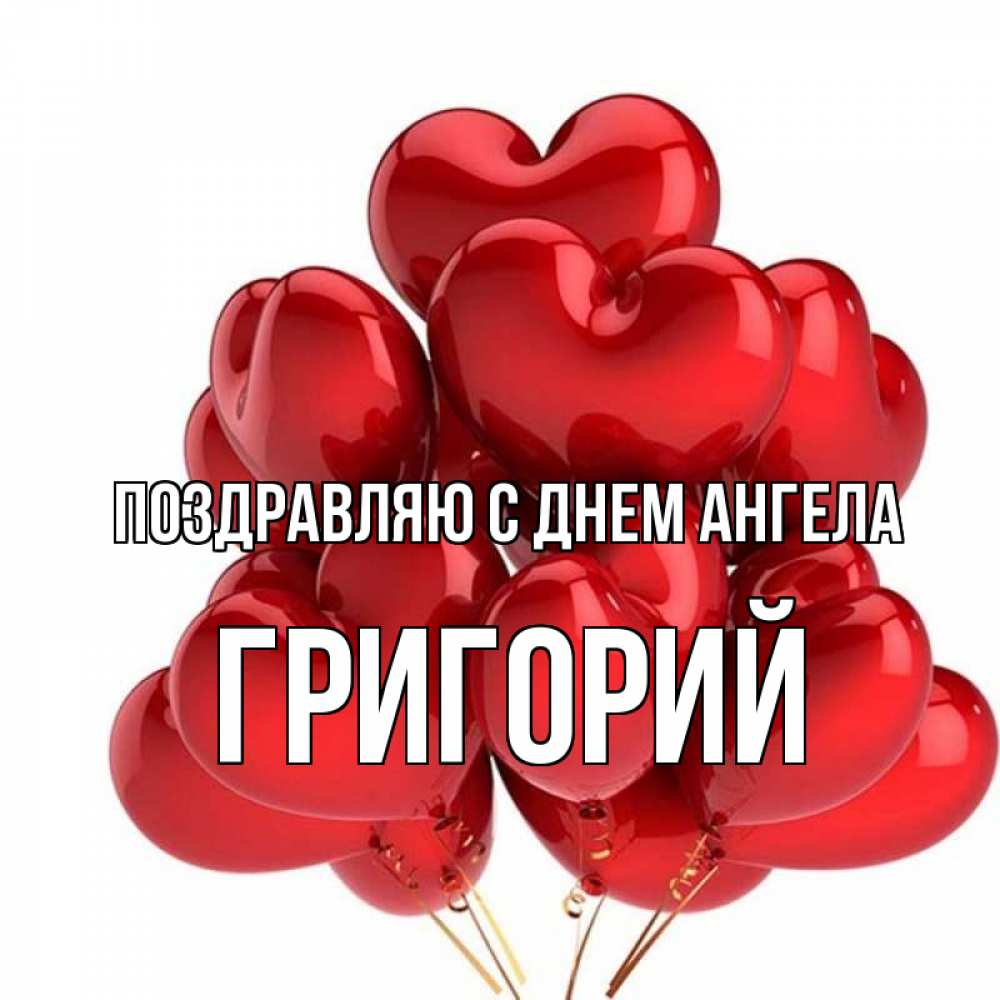 Открытка Поздравляю с днем Ангела Григорий. шарики в виде середц. бордовые шары