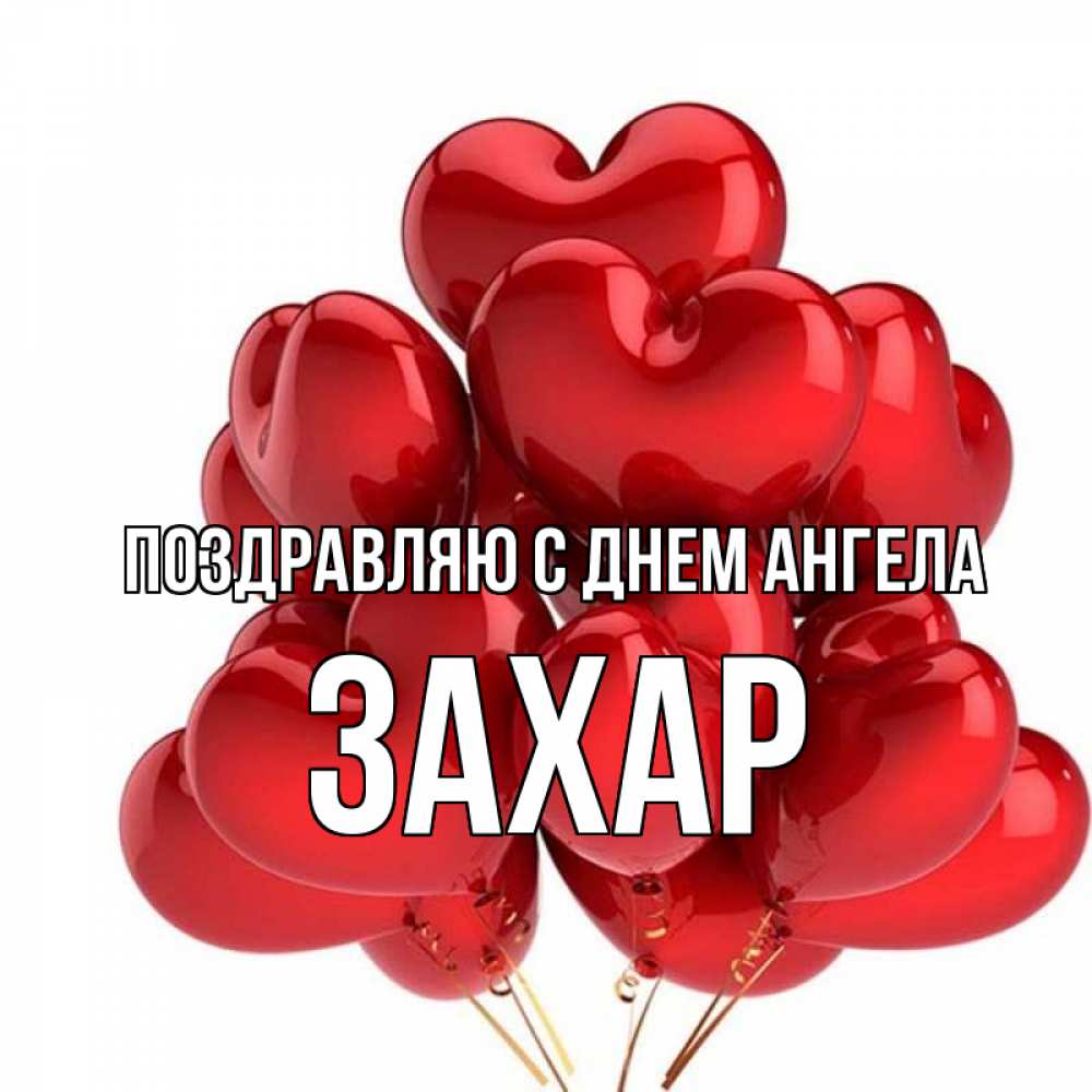 Открытка Поздравляю с днем Ангела Захар. шарики в виде середц. бордовые шары