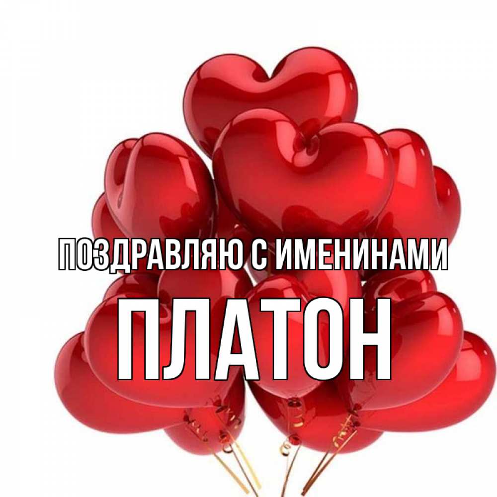 Открытка Поздравляю с именинами Платон. шарики в виде середц. бордовые шары
