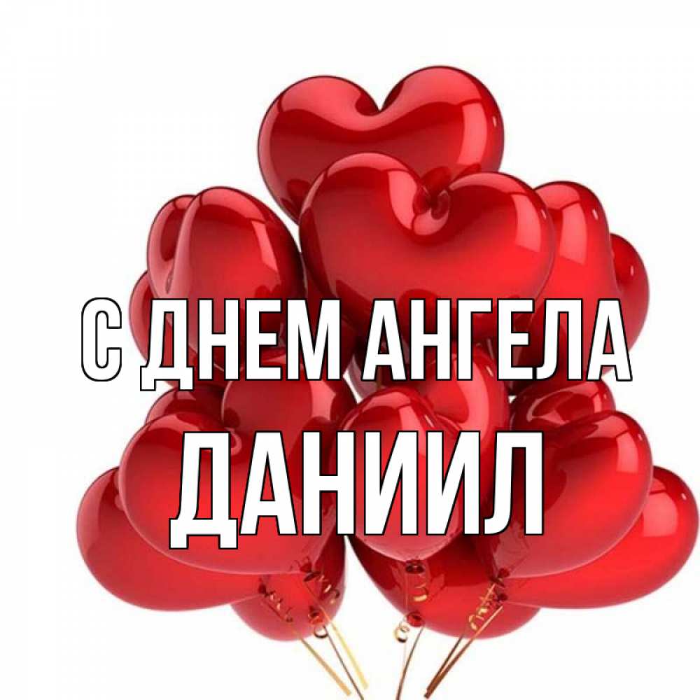 Открытка С днем Ангела Даниил. шарики в виде середц. бордовые шары