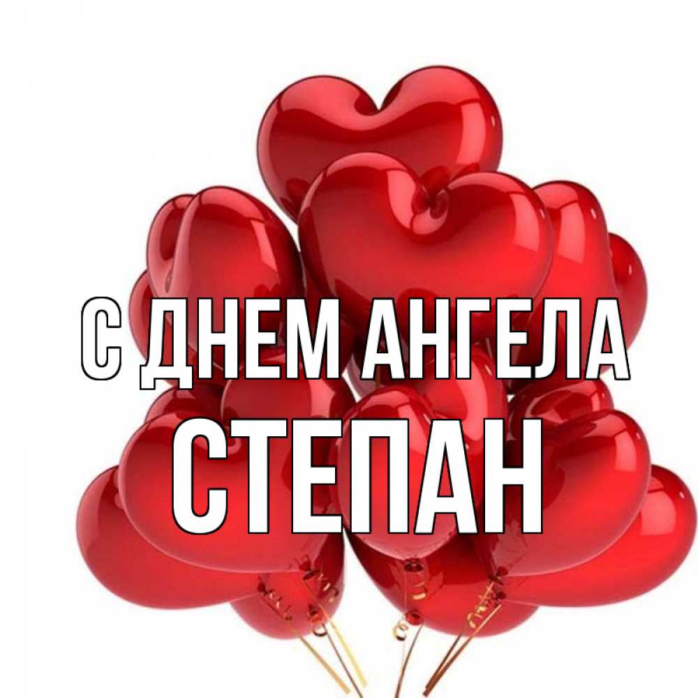 Открытка С днем Ангела Степан. шарики в виде середц. бордовые шары