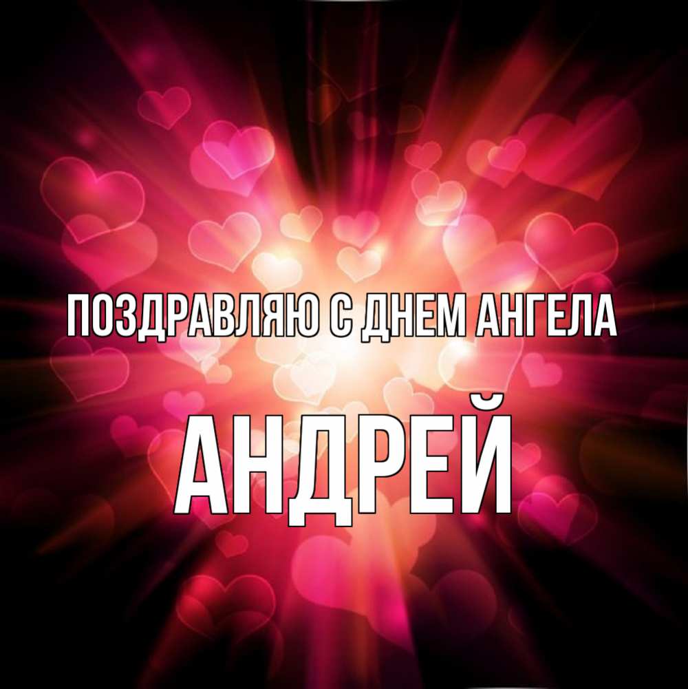 Открытка Поздравляю с днем Ангела Андрей. сердечки 1. рамочка 1