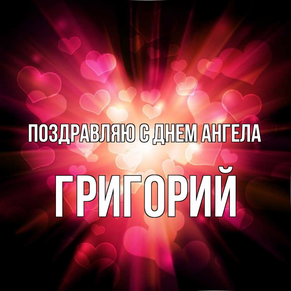 Открытка Поздравляю с днем Ангела Григорий. сердечки 1. рамочка 1