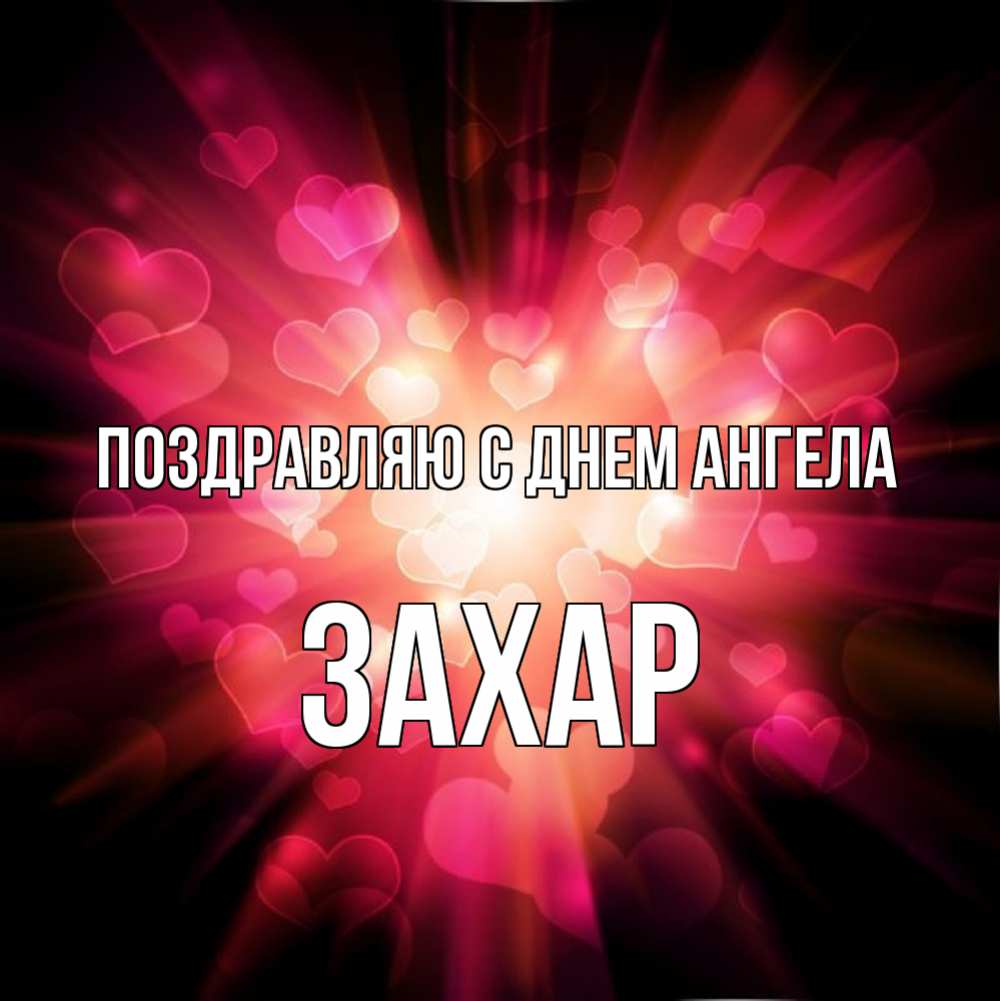 Открытка Поздравляю с днем Ангела Захар. сердечки 1. рамочка 1