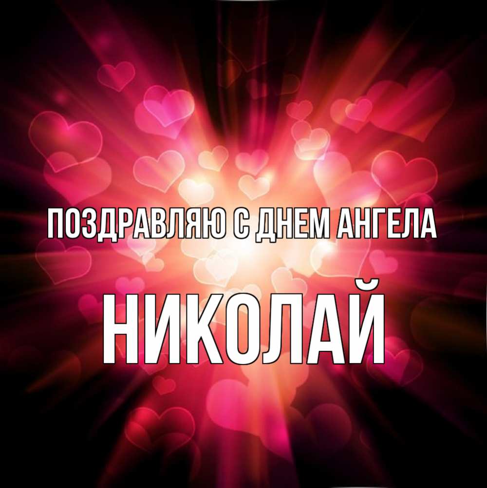 Открытка Поздравляю с днем Ангела Николай. сердечки 1. рамочка 1
