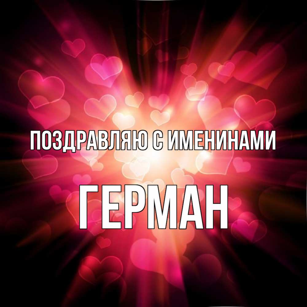 Открытка Поздравляю с именинами Герман. сердечки 1. рамочка 1