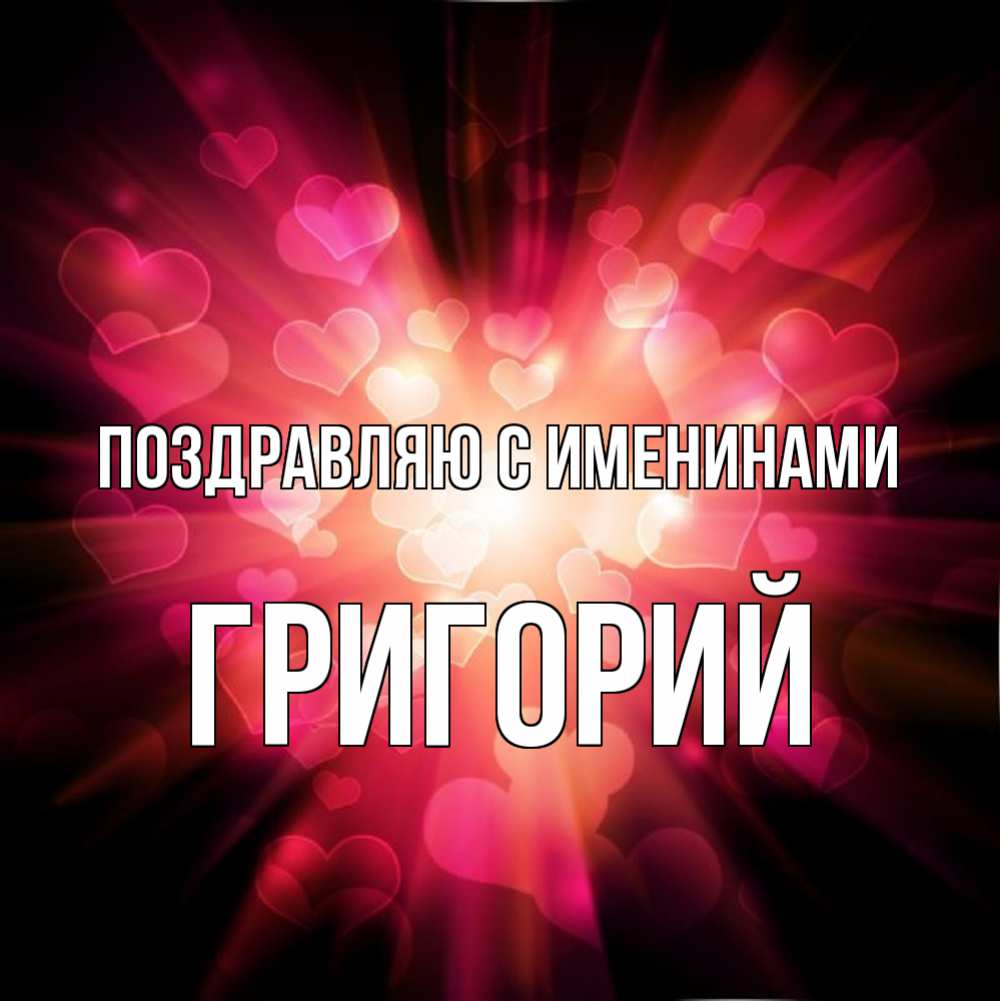 Открытка Поздравляю с именинами Григорий. сердечки 1. рамочка 1