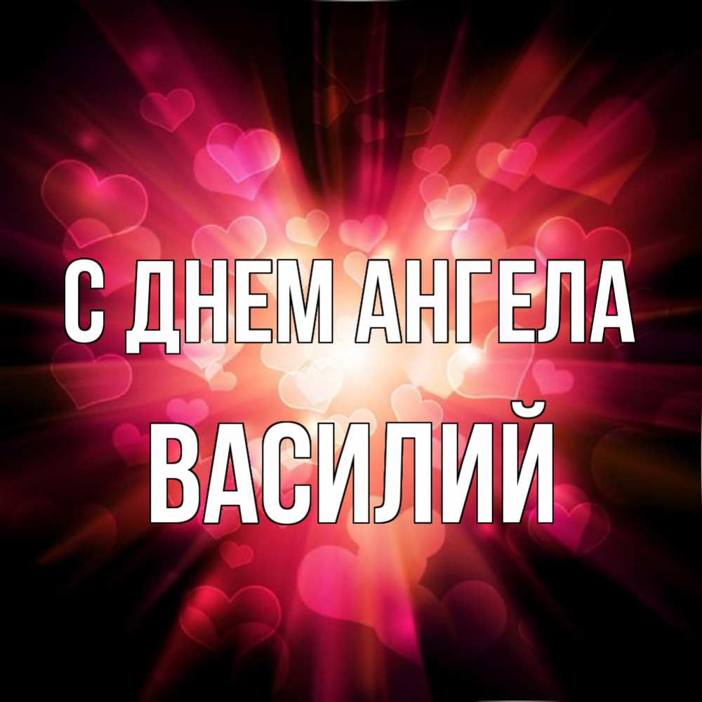 Открытка С днем Ангела Василий. сердечки 1. рамочка 1