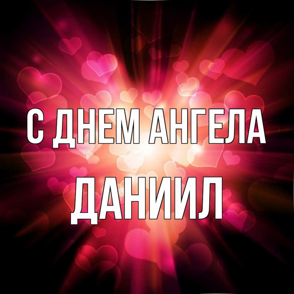 Открытка С днем Ангела Даниил. сердечки 1. рамочка 1