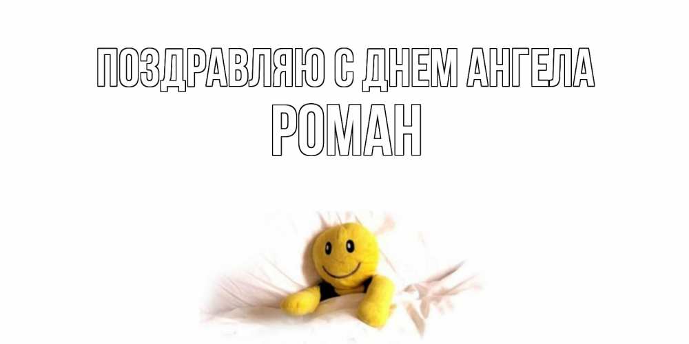 Открытка Поздравляю с днем Ангела Роман. смайлик в колваьт. смайл, кровать